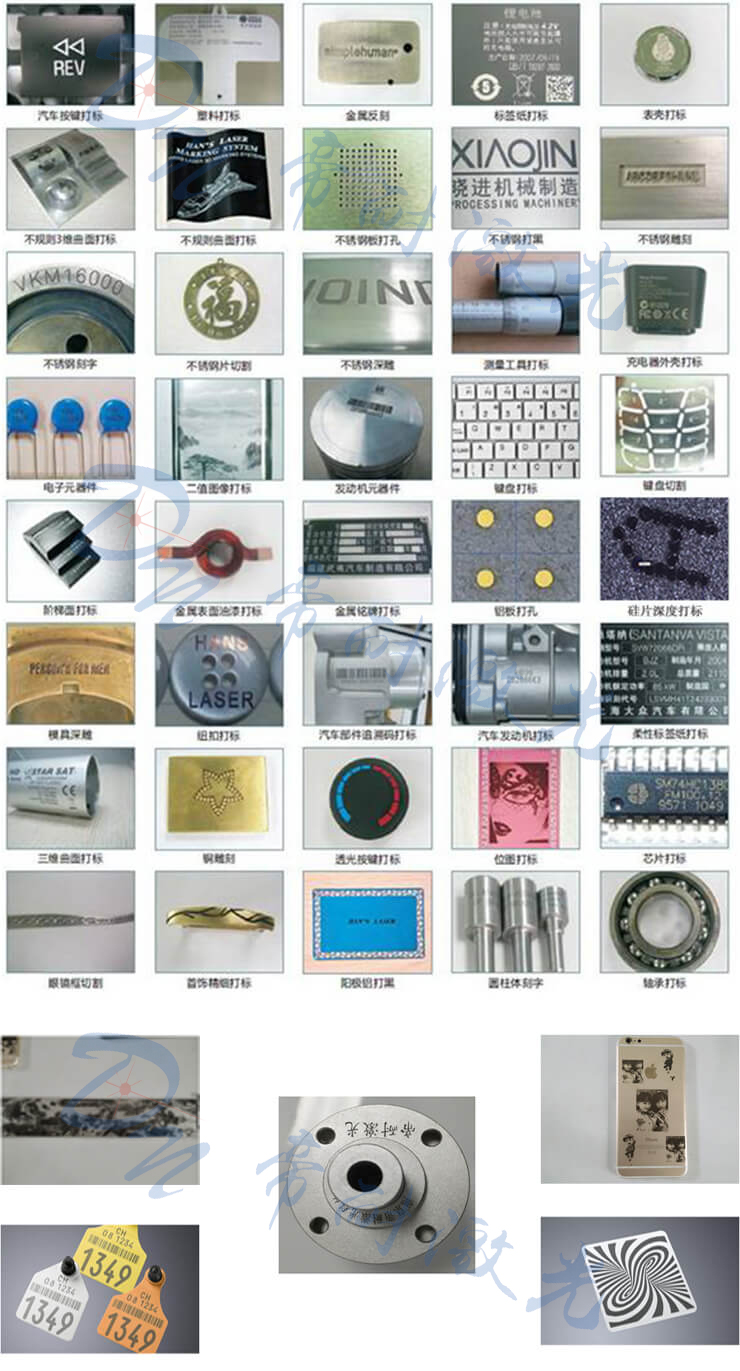廣泛適用于集成電路芯片、電腦配件、工業(yè)軸承、鐘表、電子及通訊產品、航天航空器件、各種汽車零部件、家電、五金工具、模具、電線電纜、食品包裝、首飾、煙草以及軍工產品等眾多領域圖形和文字的標記,以及大批量生產線作業(yè)。